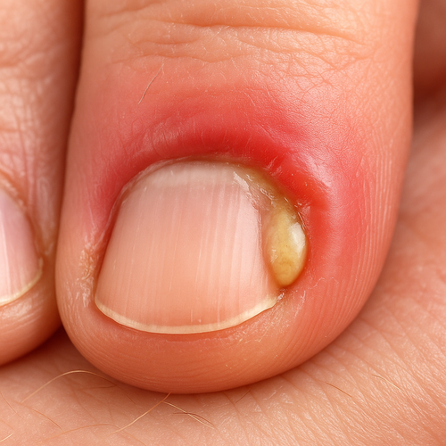 - Red, puffy rim of skin next to the nail